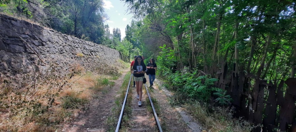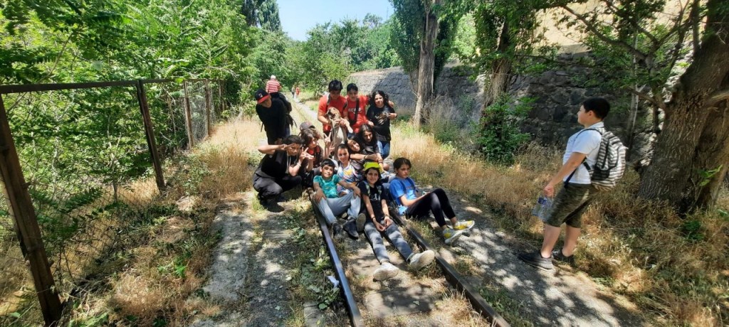 Երկար քայլելուց հետո մենք հասանք Լենինգրադյան փողոց,որից հետո սկսեցինք շարժվել դեպի Հաղթանակի կամուրջը։Երբ հասանք տեղ սկսեցին արդեն շարժվել դեպի Երևանի մանկական երկաթուղու գծերով։Երկար քայլելուց հետո հասանք մի կայարանի մոտ։Եվ ի մեր բախտի հենց այդ պահին մեզ կողքով անցավ գնացքը,որի մեջից մեզ էին նայում տասնյակ մարդիկ և երեխաներ։Քանի,որ մենք գիտեինք,որ գնացքը գնացել է և հետ է գալու մենք որոշեցինք սպասել մինչև անցնի և հասնի սկզբնական կայարան։Երբ գնացքը մեզ կողքով կրկին անցավ և սլացավ դեպի երկաթուղու,մենք որոշեցինք արագ քայլով հասնել տեղ,որպեսզի հերթական անգամ կողքով չանցնեք։Եվ ահա մենք հասանք Երևանի մանկական երկաթուղի։Ես երբ փոքր էի գրեթե ամեն շաբաթ այցելում էի այստեղ և նստում էի այդ գնացքը։Բարձրանալով աստիճանները մենք հասանք ելքի մոտ և դուրս եկանք այդ վայրից։Դրանից հետո թունելով անցանք և հասանք Պրոսպեկտ։Թունելով հետաքրքիր էր անցնելը,մենք ճանապարհին երգում էինք,զվարճանում էինք և ուրախանում էինք։Երբ դուրս եկան թունելով որոշեցինք պատվիրել տաքսի և հասնել դպրոց,ինչը մենք արեցինք։