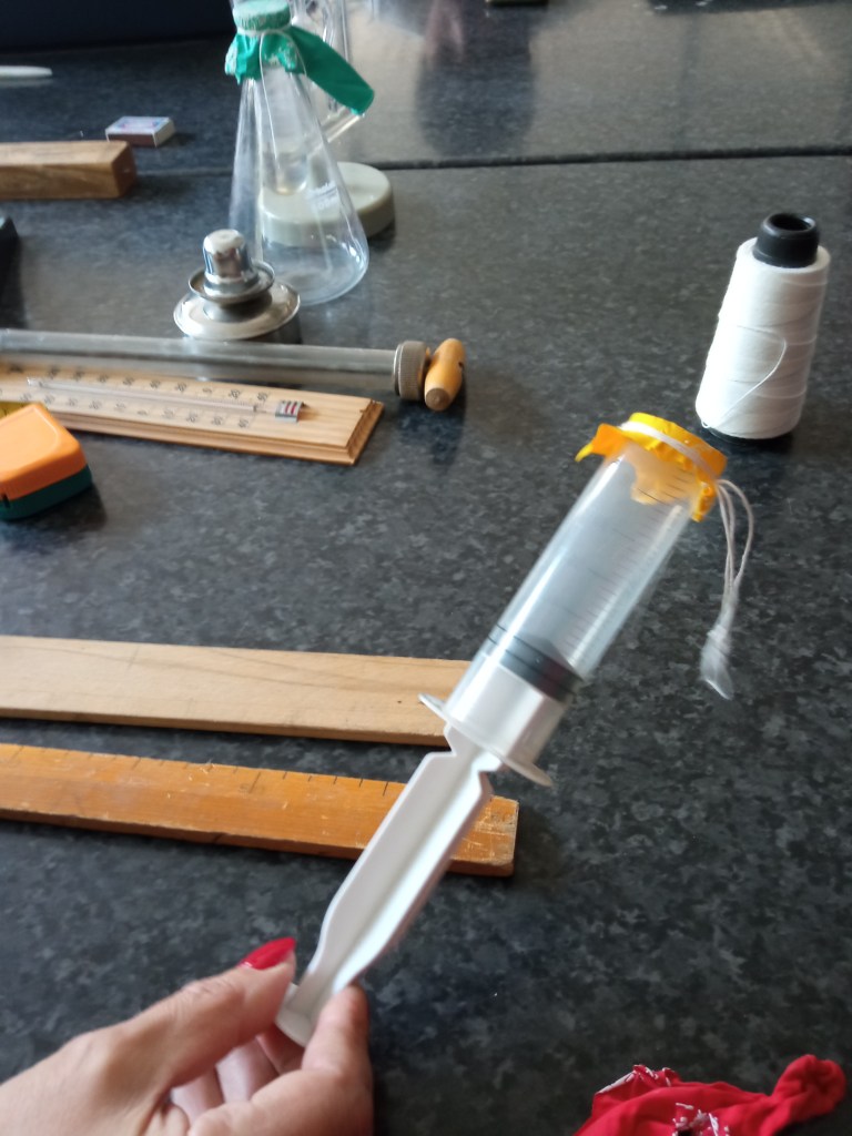 Անհրաժեշտ սարքեր և նյութեր՝ խողովակ,որի մեջ ազատ շարժվում է մխոց,ռետինե բարակ թաղանթ և թել։