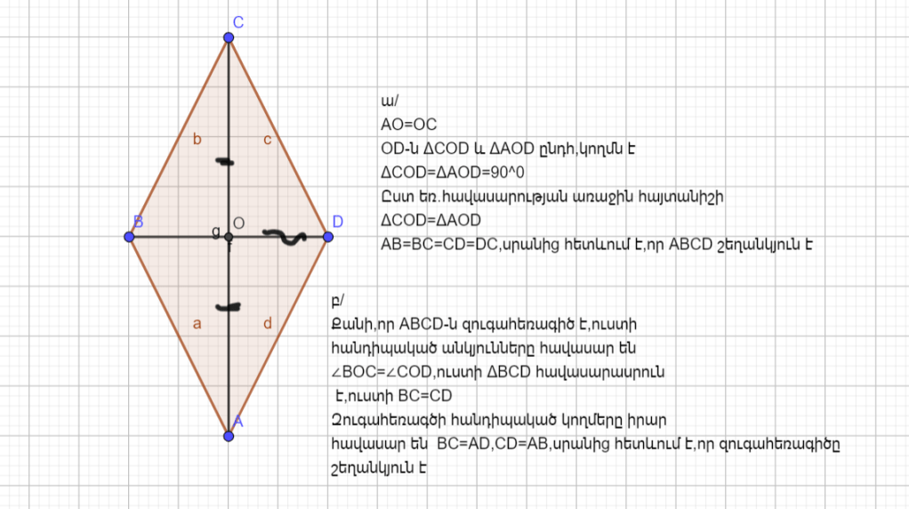 - Հատման կետում կիսվում են,BO=OD,OC=AO