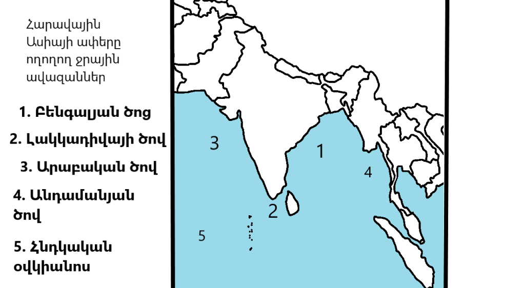 Քարտեզի վրա նշել Հարավային Ասիայի երկրները և այդ երկրների ափերը ողողող ջրային ավազանները: