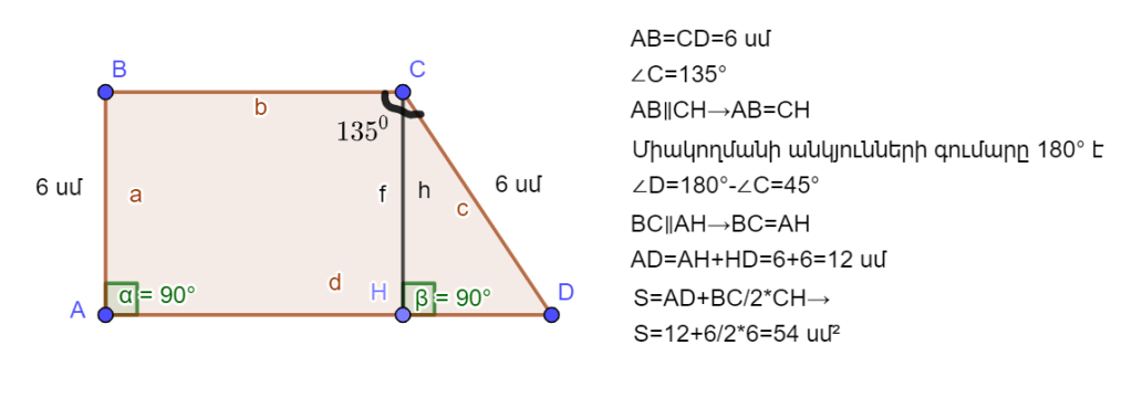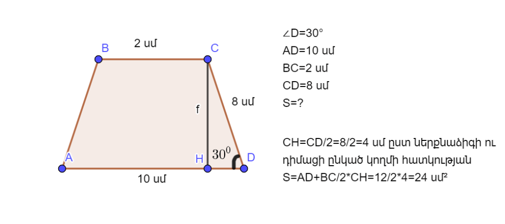 բ) <D=300; AD=10 սմ; BC=2 սմ; CD=8 սմ