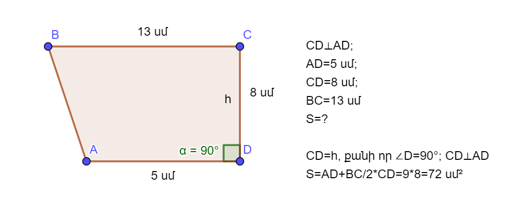 գ) CD⟂AD; AD=5 սմ; CD=8 սմ; BC=13 սմ