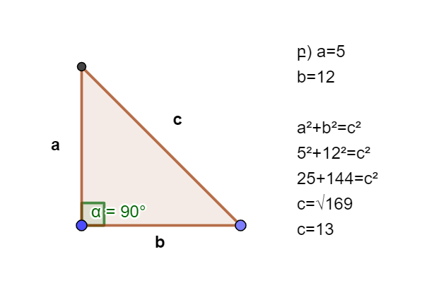 ա) a=12; c=13