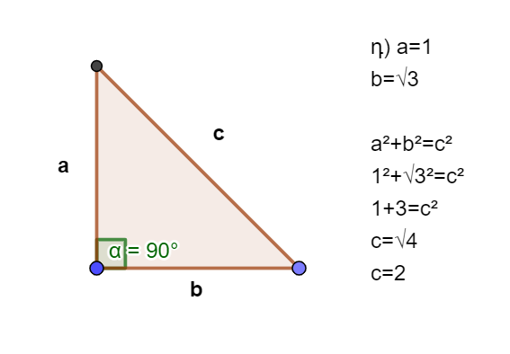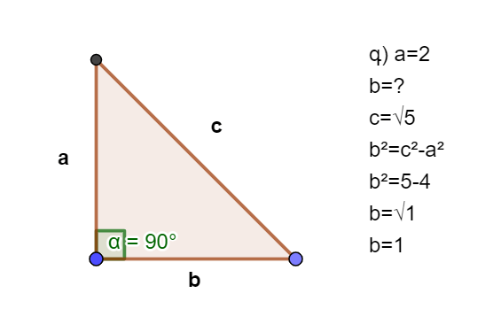 գ) a=2; c=√5