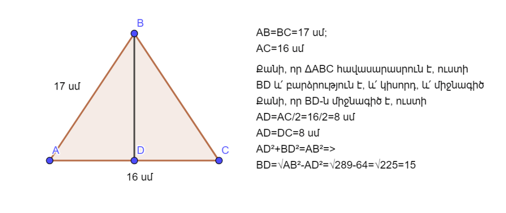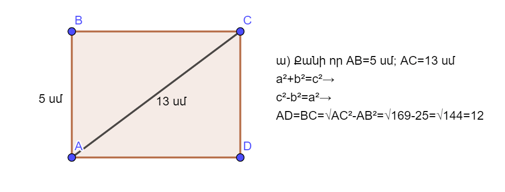 ա) AD=?; AB=5 սմ; AC=13 սմ
