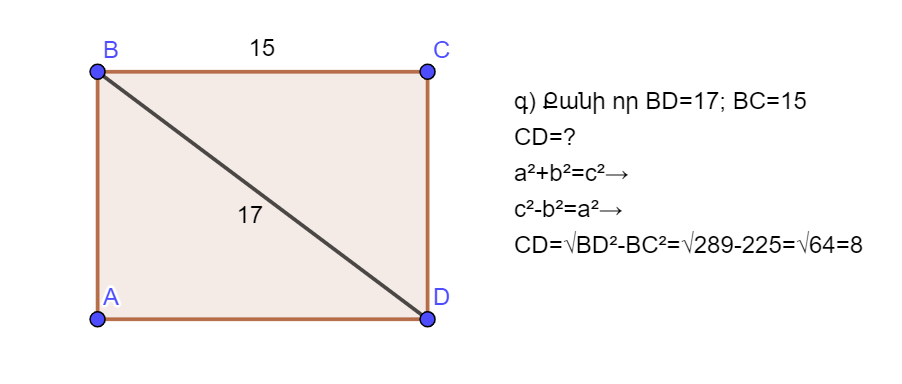 գ) BD=17; BC=15; CD=?
