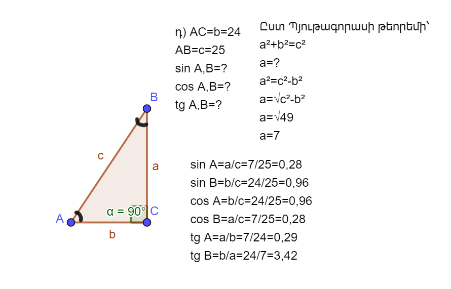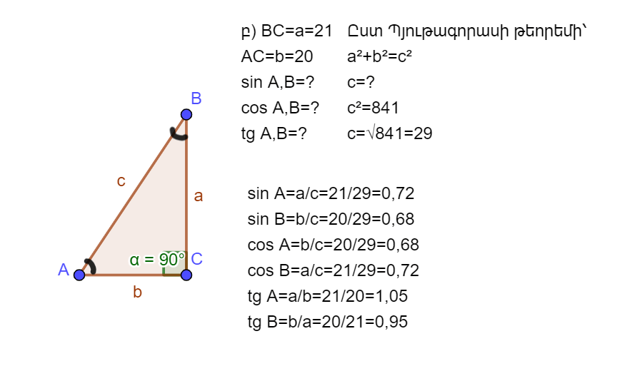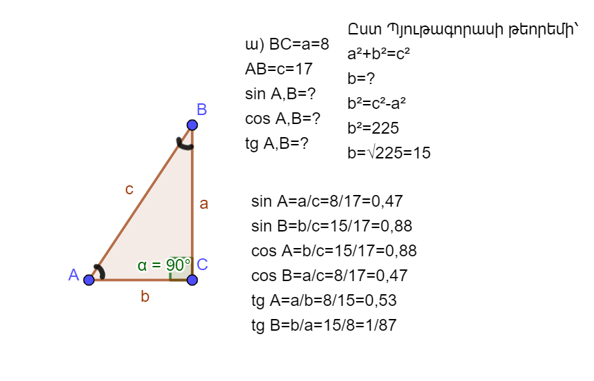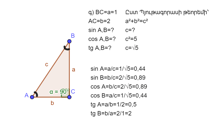 Սուր անկյան սինուսը միշտ փոքր է 1-ից, քանի որ sin=√1-√cos2A, սա էլ փոքր է 1-ից։