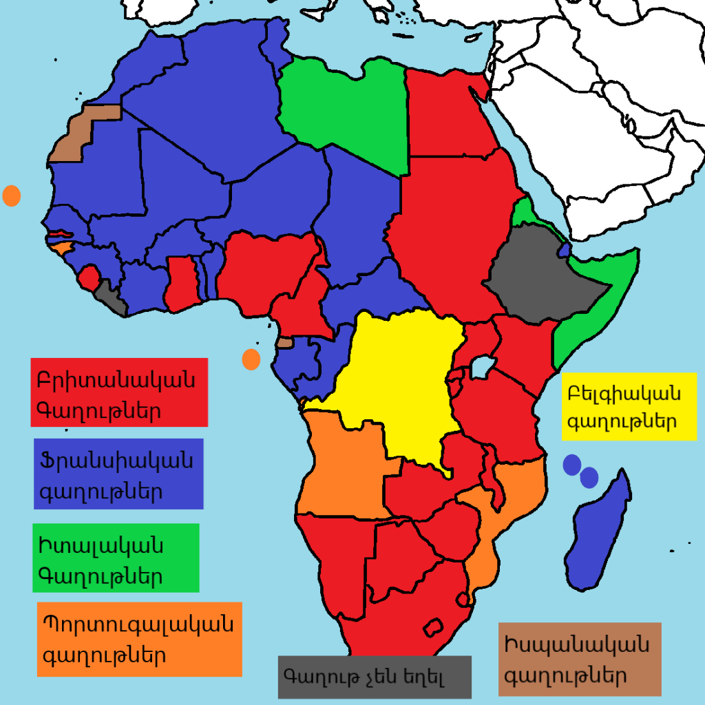 Գաղութներ չեն եղել Եթովպիան և Լիբերիան։