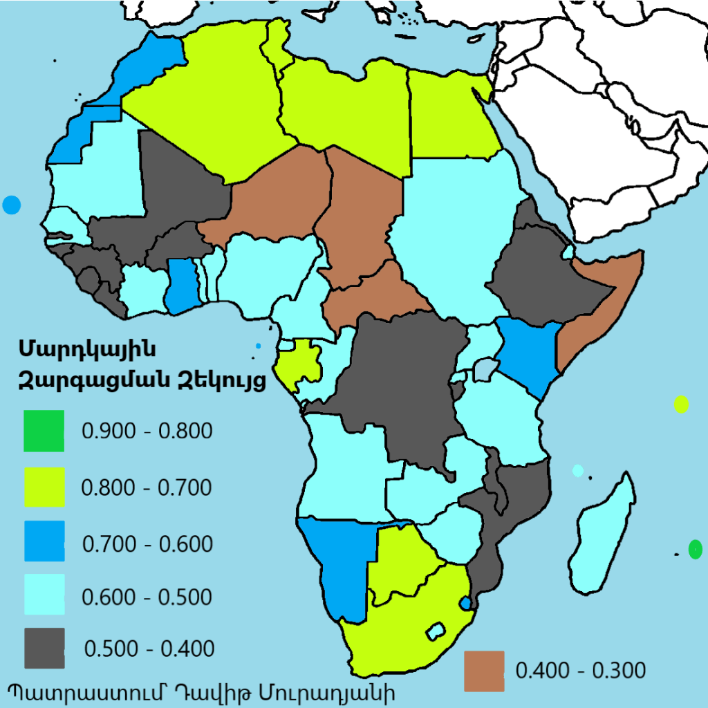 Կանաչով նշված են առավել զարգացած երկրները, իսկ շագանակագույնով՝ առավել ոչ զարգացած։ Հետևելով ինդեքսին։