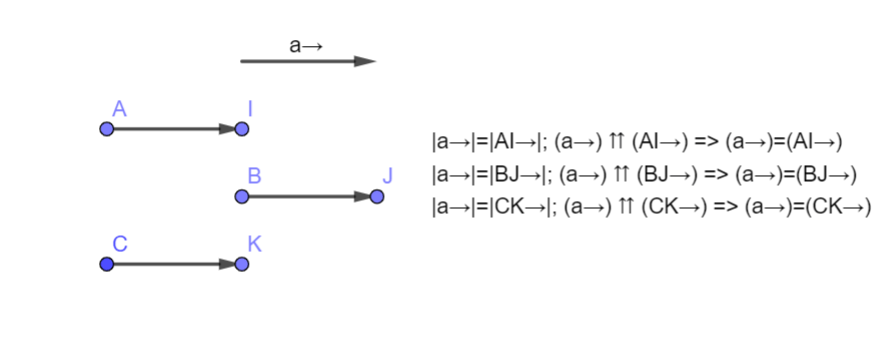 |a→|=|AI→|; (a→) ⇈ (AI→) => (a→)=(AI→)
