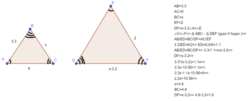 ա) DE=8 սմ; EC=4 սմ; BC=7 սմ; AE=10 սմ; EF=?; FC=?