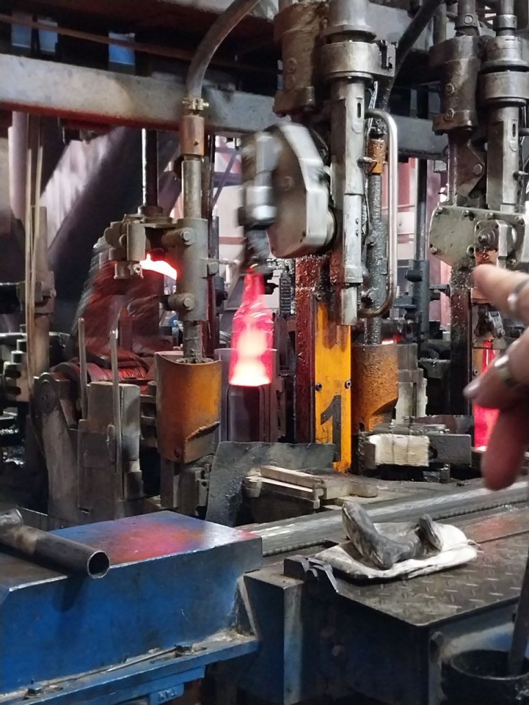 Շշի ձևը ստանալուց հետո, այն մեխանիզմների աշխատանքի շնորհիվ ընկնում էր մի գծի վրա, որով և անցնում էր իր հետագա ճանապարհը՝ դեպի ստուգում։ Ձև տվող ու փոխանցող այդ մեխանիզմը կազմված էր վեց սեկցիաներից, որոնք իրենց հերթին պատրաստում էին ապակին՝ իր ձևով, այնուհետև ուղարկում այն գծով դեպի ստուգման։ Այդպես հավասարաչափ աշխատանք կատարելով, այնքան մանրակրկիտ էր այդ պատկերը, որ շշերը միմյանց չէին դիպչում ու չէին խանգարում։ Սա շատ բարդ ու մանրակրկիտ աշխատանքի արդյունք էր։ Պետք է նշեմ, որ այս գործընթացում որոշ նյութեր, օրինակ MgO3, NaCO3-ը վերածվում են օքսիդների, այսինքն MgO2, NaCO2՝ ջերմության շնորհիվ: Այնտեղ կային նաև օգնական աշխատողներ, որոնք ջերմակայուն մկրատով վերցնում էին դեֆորմացված շշերը և նետում այն ջուրը, որպեսզի նրանք կորցնեն իրենց ջերմությունը և սառչեն, որից հետո էլ կանցնեն վերամշակումը, և գործընթացը կսկսվի նորից։ Մենք մի որոշ ժամանակով նաև մուտք գործեցինք ծրագրավորման սենյակ, որտեղ աշխատողները ծրագրավորում էին այս ամբողջ գործընթացը։ Մենք տվեցինք մեզ հուզող հարցերը և աշխատողները սիրով պատասխանեցին դրանց։ Ընկեր Արթուրը, ով ամենասկզբից մեզ հետ էր, ներկայացրեց համագործակցային կազմակերպություններին, որոնց մեծ մասը, զարմանալի չէ, որ խմիչք արտադրող կազմակերպություններ ու արտադրություններ էին։ Նաև իմացանք, որ այստեղ արտադրվող ապակե տարաները արտահանվում են նաև այլ երկրներ, մասամբ Վրաստան։ Այստեղ նաև արտադրվում էին Վրաստանի կազմակերպությունների կողմից պատվեր ձևակերպած շշերը՝ իրենց հատուկ հեղինակային իրավունքով, ձևով, չափսով, ծավալով։ Այսպիսի հետաքրքիր մասնաճյուղ էր կանաչ գույնի ապակե տարայի գործարանը։