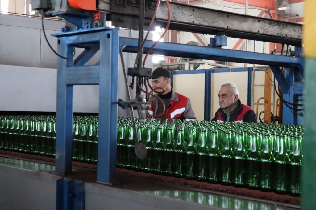 Բլրի վրա գտնվող այդ գործարանը, ճանապարհի եզրից չէր երևում, սակայն երբ մենք բարձրացանք մեքենայով այդ բլուրը, մեր առջև բացվեց մի քանի հարյուր հեկտար զբաղեցնող այդ գործարանը, որն ապշեցնում էր իր մեծությամբ ու աշխատանքով։ Ծանոթանալով մեր ուղեկցողների հետ, շարժվեցինք առաջ։ Մինչև լաբորատորիաներ ու գործարանի մասնաճյուղեր հասնելը, տեսանք հազարավոր փաթեթավորված ապակե շշեր ու տարաներ, որոնց վրա գրված էր պատվիրողի՝ արտադրական հիմնարկի անունը, տեսանք հումքն ու ավազը։ Տեսանք բազմաթիվ անուններ, օրինակ Նոյ, Կախեթի, Կիլիկիա և այլն։ Առաջին մեխանիզմը, որի հետ ծանոթացրեցին մեզ ընկեր Արթուրն ու ընկեր Մառան, վերամշակման ու մաքրման սարքն էր։