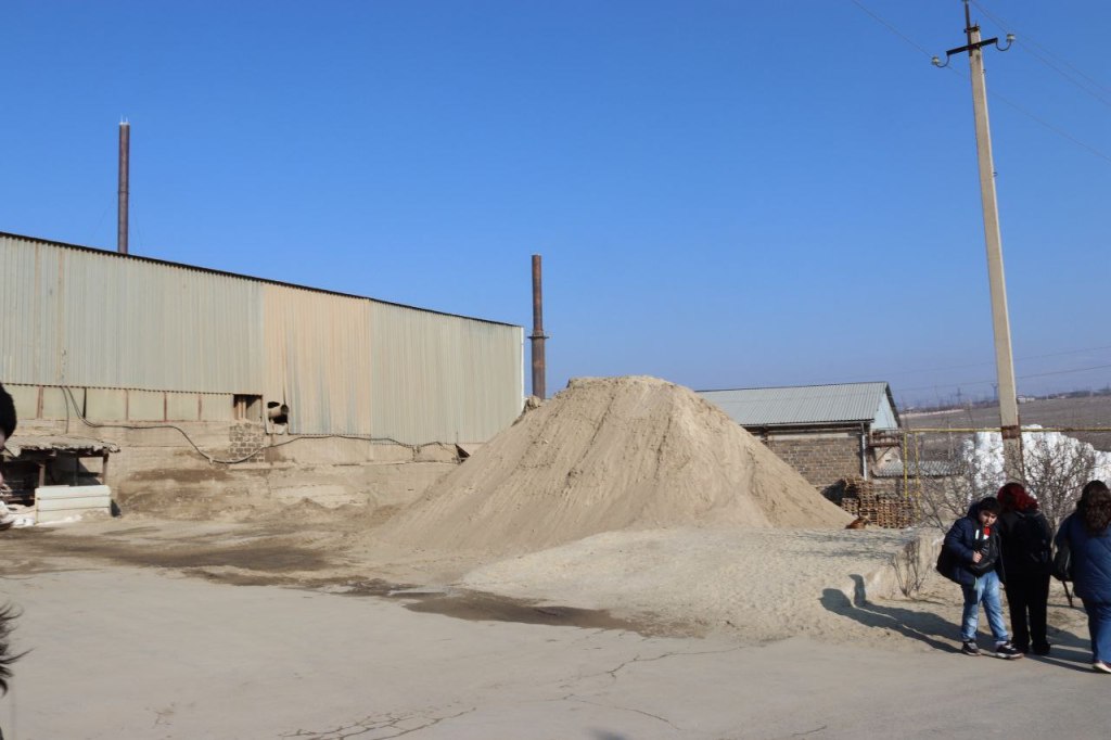 Իհարկե, բոլորս էլ գիտենք, որ ապակին պատրաստում են ավազից, ուստի նորություն չէր ավազի առկայությունը այդ գործարանի տարածքում։ Ավազի քանակությունը նույնպես ապշեցուցիչ էր։ Այդ ավազը, գործարանը գնում է տարբեր երկրներից, մասամբ Եգիպտոսից ու Վրաստանից։ Եգիպտոսի ավազը դա Սահարա անապատն է, հետևաբար շատ որակով շշեր են ստացվում այդպիսի ավազից։ Այն մեր սովորական ավազից տարբերվում է իր մանրությամբ, գույնով, հալման ջերմաստիճանով ու նրբությամբ։ Սակայն առանձնահատուկ ինչ-որ տարբերություններով այն օժտված չէ։