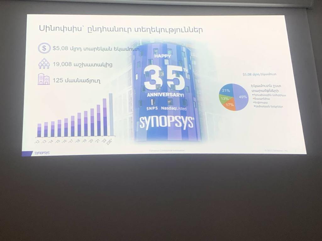Պրեզենտացիայում մեզ ներկայացրեցին ուղղությունների, նպատակի, նշանակության ու իմաստի, ուսուցման ու կրթության ձևի, մասնագիտական կողմնորոշվածության, կրթական համակարգի հետ։ Այսքանով հանդերձ նաև ներկայացրեցին, թե որ համալսարանների ու ամբիոնների հետ են համագործակցում, ինչպես են կազմակերպում կրթությունն ու աշխատանքը, ինչ բարձունքների են ցանկանում հասնել և ինչպես են ընդունում ու աջակցում յուրաքանչյուր սովորողին։ Հետաքրքիր էր ծանոթանալ, աշխատել, ուսումնասիրել, հետազոտել այսքան մեծ ձեռնարկությունը, սակայն պետք է նշեմ, որ սա միջազգային կազմակերպություն է և այն Հայկական չէ, ուստի զարմանալի չէ, որ մեզ պատմեցին, թե «Սինոփսիս Արմենիա»-յի բյուջեն Հայաստանի բյուջեից շատ է կազմում։ Սովորողների հուզող հարցեր հնչեցին և դրանց հիմնավորված պատասխաններ։ Մի խոսքով՝ կարծում եմ, Հայաստանը պետք է ոտնակոխի այս ոլորտ, քանի որ սա է ապագայի նշույլը, հիմքը և կարծում եմ, որ այս քայլով կստեղծվեն բազում աշխատատեղեր։