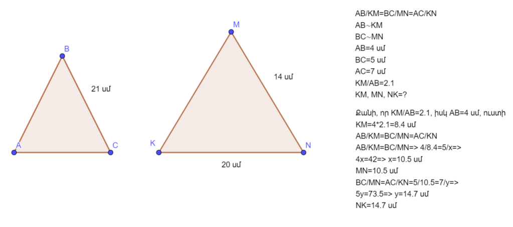 Քանի, որ KM/AB=2.1, իսկ AB=4 սմ, ուստի