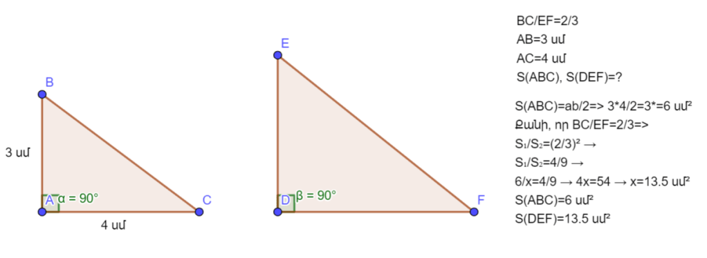 6/x=4/9 → 4x=54 → x=13.5 սմ²