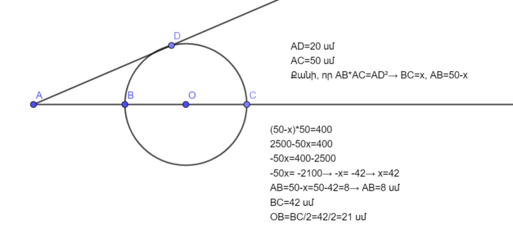AB=50-x=50-42=8→ AB=8 սմ