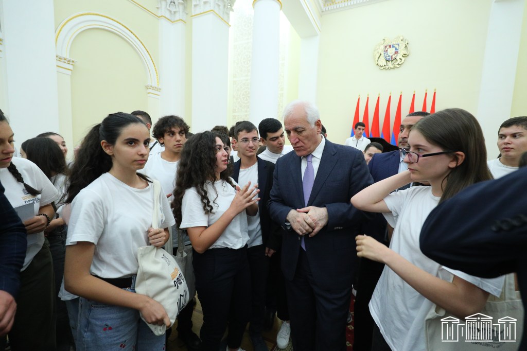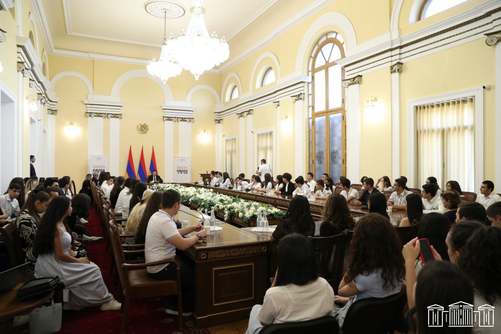 ՀՀ վարչապետ Պրն․ Նիկոլ Փաշինյանի հետ մենք հանդիպել էինք գիտելիքի և դպրության նախօրեին՝ Հանրապետության հրապարակի թիվ 1 Կառավարական տանը։ Մեզ ուղեկցում էին ԱԺ փոխնախագահն ու ԿԳՄՍ նախարարը։ Մենք լցված էինք ոգևորությամբ, որ կառավարության նիստերի դահլիճը տեսնելու ենք մեր սեփական աչքերով և այնտեղ նույնիսկ ունենալու ենք հանդիպում վարչապետի հետ։ Քանի որ մեր օրակարգով հանդիպումը հինգշաբթի օրն էր, իսկ այդ օրերին՝ ըստ կարգի, կառավարության նիստ է տեղի ունենում, ուստի մենք երկար սպասեցինք մինչև դահլիճ բարձրանալը։ Ճանապարհին տեսանք շատ նախարարների, որոնք վերադառնում էին աշխատանքային վայրեր՝ կառավարության նիստից։ Բարձրանալով հինգերորդ հարկ, մենք մուտք գործեցինք կառավարության նիստերի դահլիճ, որտեղ քիչ առաջ ուղիղ եթերով հեռարձակվում էր նիստը։ Իհարկե, ինչպես ԱԺ-ի նիստերի, այդպես էլ կառավարության նիստերի դահլիճը տարբերվում էր տեսախցիկով երևացող դահլիճից։ Սովորողները տպավորված էին, որ կկարողանային տեսնել վարչապետին անձամբ, այլ ոչ թե տեսանյութերով կամ լուրերով։ Մենք տեղավորվեցինք, ես էլ կարողացա տեղ զբաղեցնել ԱԽ քարտուղարի տեղում։ Մի քանի ակնթարթ անց ներս մտավ ՀՀ վարչապետ Պրն․ Նիկոլ Փաշինյանը, ով սովորողներին ողջունեց, և ինչպես նիստերի ժամանակ, այդպես էլ՝ հանդիպման ժամանակ, խոսքն սկսեց նախաբանով, պատմելով, վերջին իրողությունների մասին։ Վարչապետի հետ մենք ունեցանք երևի թե ամենահիշարժան ու տպավորիչ հանդիպումը։