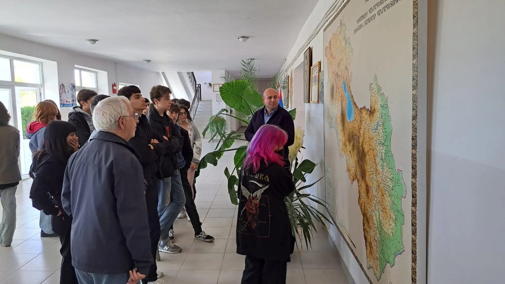 Մինչև ճաշին անցնելը սովորողներին մեր մասնակիցներից Արի Ագոփը իր նախագծային խմբով ներկայացրեց իր նախագիծը՝ ուղղված երիտասարդության շրջանում նախաձեռնողականության զարգացմանը։ Ես ցանկանում եմ հատուկ նշել, որ այսպիսի ծրագրերը և նախագծերը նպաստում են երկու (որոշ դեպքերում՝ ավելի շատ) հաստատությունների միջև համագործակցական կապերի ընդլայնմանը, և հետևաբար հարաբերությունները մնում են ոչ միայն ուսումնահայրենագիտական-կրթական, այլև դառնում՝ գործնական, ինչի համար, մասնավորապես՝ ես շատ ուրախ եմ, քանի որ համարում եմ, որ հայաստանյան բոլոր դպրոցները պետք է համագործակցեն, ստեղծեն համագործակցության հարթակներ, որպեսզի ոչ միայն միմյանց հետ կապերը չկորեն, այլև նրանց միջև տեղի ունենա գիտելիքի ու փորձի փոխանակում, որպեսզի կազմակերպվեն հանդիպումներ, այցեր՝ միմյանց լավ ճանաչելու համար։