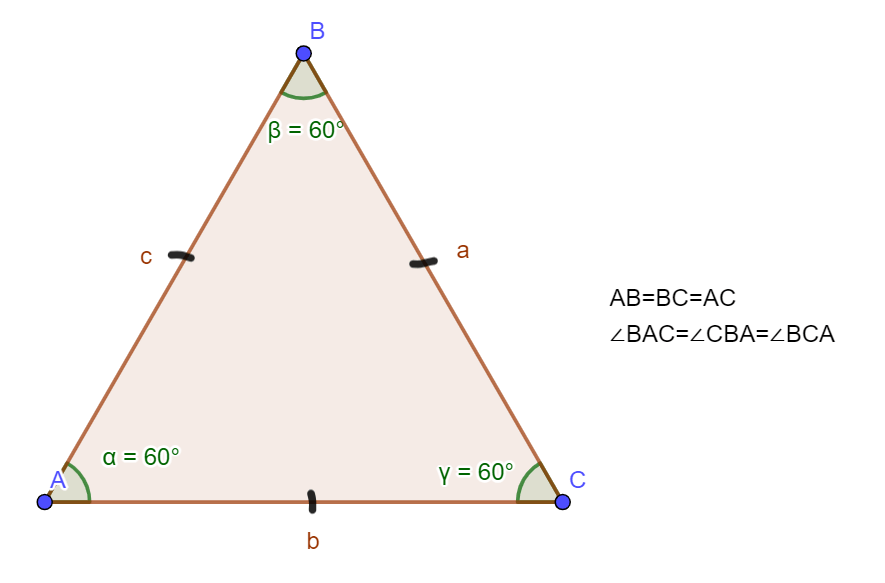 AB=BC=AC; ∠BAC=∠CBA=∠BCA