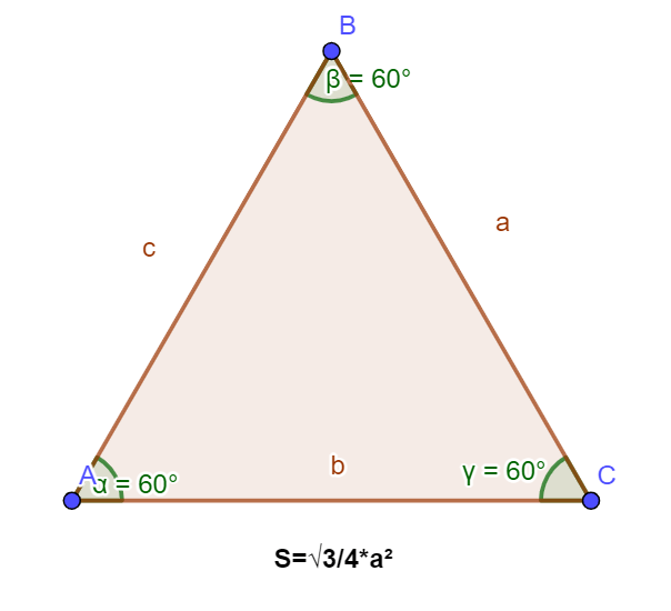 Հավասարակողմ եռանկյան մակերեսը․ S=√3/4*a2