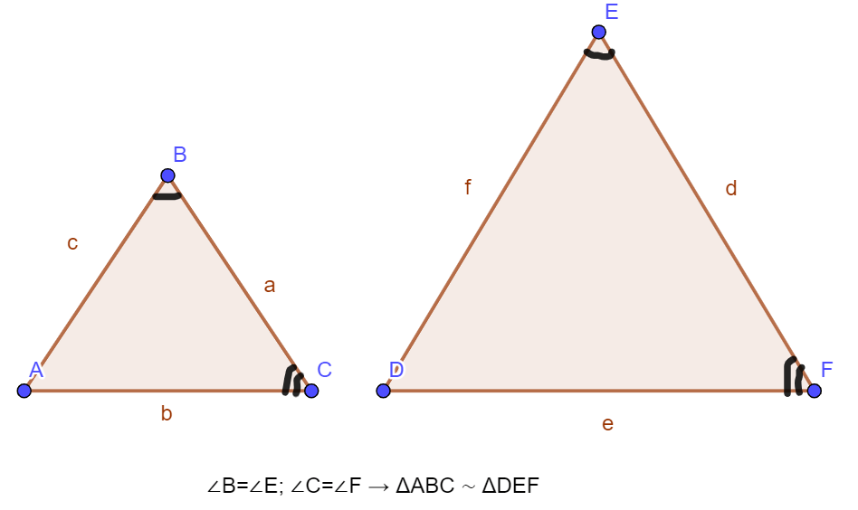 I հայտանիշ. Եթե մի եռանկյան երկու անկյունները համապատասխանաբար հավասար են մյուս եռանկյան երկու անկյուններին, ապա եռանկյունները նման են: