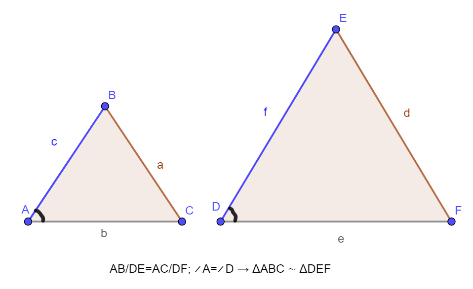 II հայտանիշ․ Եթե մի եռանկյան երկու կողմերը համեմատական են մյուս եռանկյան երկու կողմերին, իսկ այդ կողմերով կազմված անկյունները հավասար են, ապա եռանկյունները նման են: