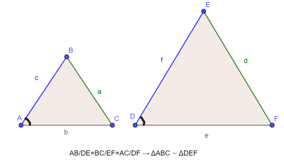 III հայտանիշ․ Եթե մի եռանկյան երեք կողմերը համեմատական են մյուս եռանկյան երեք կողմերին, ապա եռանկյունները նման են: