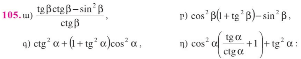 ա) tg β * ctg β — sin2 β/ctg β=tg β * 1/tg β — sin2 β/ctg β=cos2 β/ctg β=cos2 β / cos β/sin β=cos β * sin β