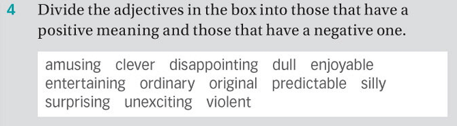 Positive meaning — amusing, clever, enjoyable, entertaining, ordinary, original, predictable, surprising