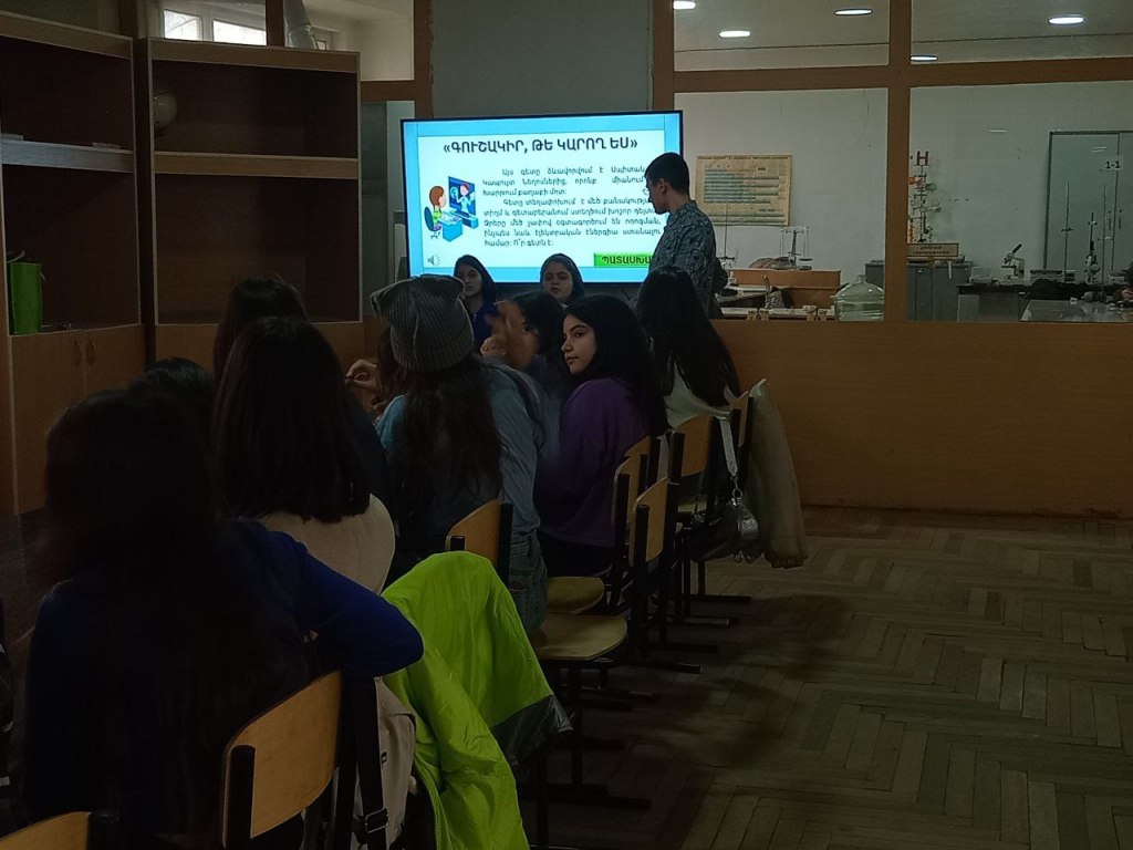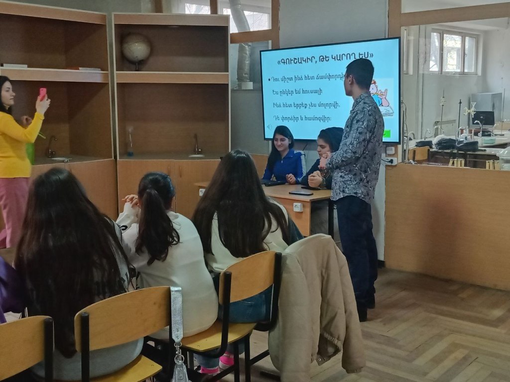 Մինչ երկար ընդմիջում անելը, «սովորող-սովորեցնող» նախագծի շրջանակներում Վարսենիկ Գրիգորյանի ջոկատի հետ անցկացրեցինք խաղ-վիկտորինա բնագիտական բաղադրիչով։ Խաղ-վիկտորինային աշակերտներն ակտիվ մասնակցություն ցուցաբերեցին, պատասխանեցին շատ ու շատ հարցերի։ Նմանատիպ նախագծեր դեռ իրականացվելու են։