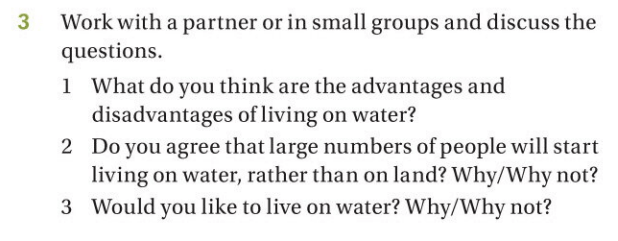 2. Do you agree that large numbers of people will start living on water, rather than on land? Why/Why not?