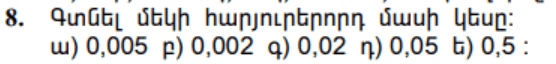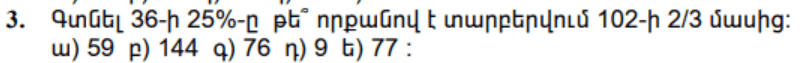 36-ի 25%-ը նրա 1/4 մասն է, այսինքն՝ 36/4=9