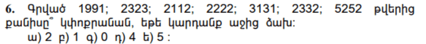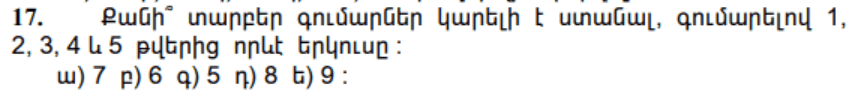 Իրարից տարբեր պատասխաններն են՝ 3, 4, 8, 9