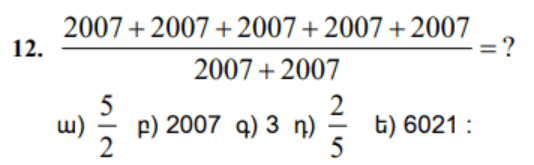 (2007+2007+2007+2007+2007)/(2007+2007)=10035/4014=5/2