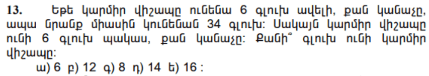 - 14+6=20 (կարմիրը, եթե լիներ 6-ով ավել)