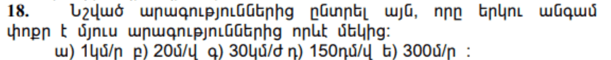 Պատ՝. գ) 30 կմ/ժ (երկու անգամ փոքր է 1 կմ/ր-ից)