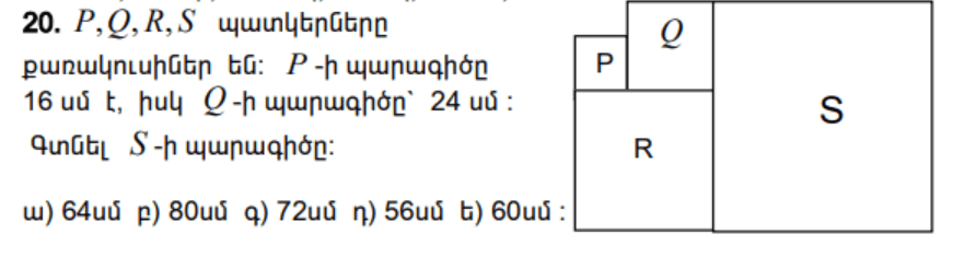 Q-ի պարագիծը 24 է, հետևաբար՝ մի կողմը՝ 6: