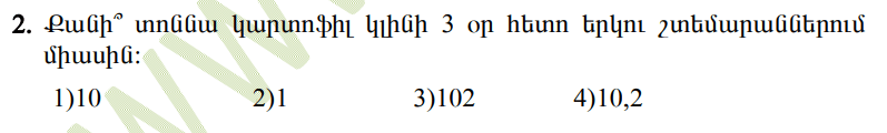 11-րդ օրը խնձորի հասույթը չի գերազանցի 10 օրվա տանձի հասույթին, այլ միայն 12-րդ օրը։