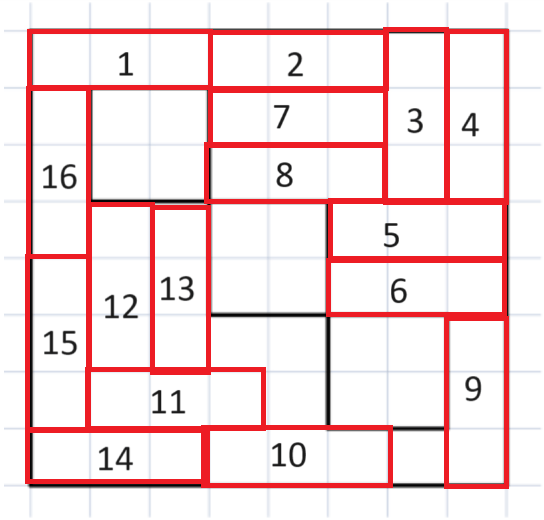 1×3 ուղղանկյունները հնարավոր կլինի կտրել հետևյալ տեղերում. (ընդհանուր՝ 16)