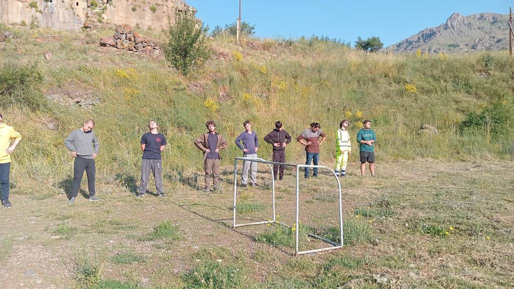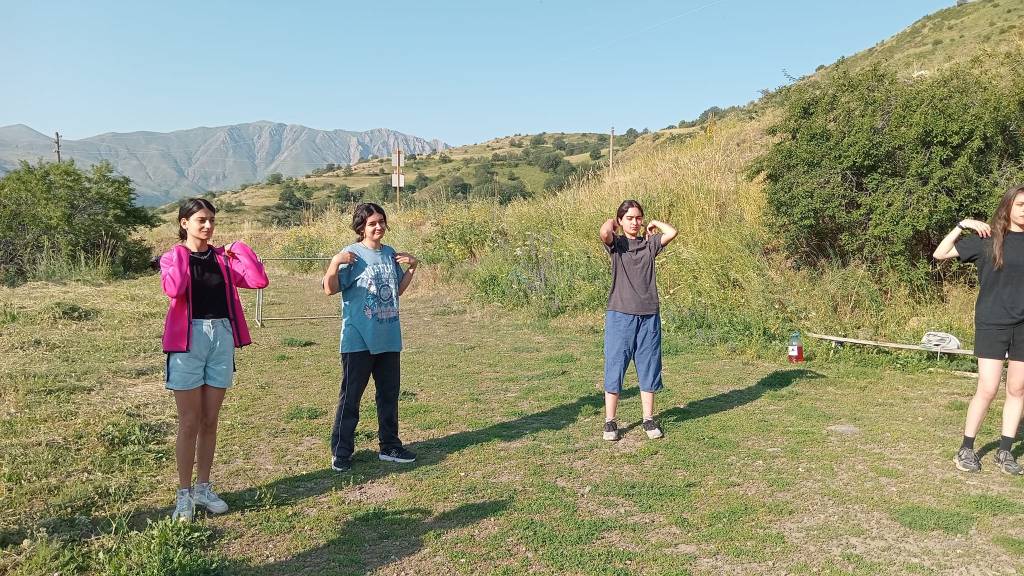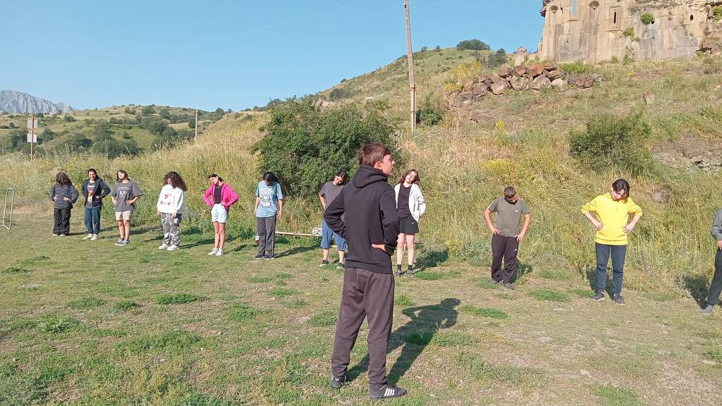 Արթնանալով կանուխ՝ հավաքեցինք մեր տեղաշորերը, իրերը և սկսեցինք առավոտյան նախավարժանքը։ Նախավարժանքը, որը կարող եք դիտել ընկեր Գոհարի ֆեյսբուքյան էջում, վարում էր 11-րդ դասարանի սովորող Վարուժան Կարապետյանը։