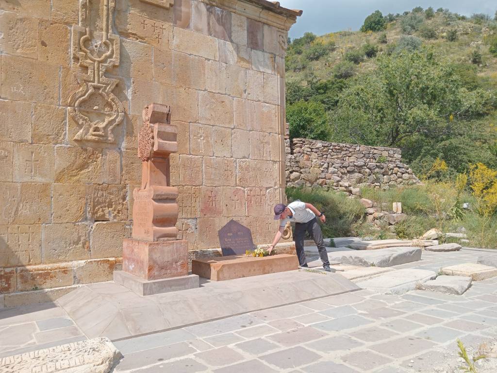 Անշուշտ, յուրաքանչյուր հայրենասեր հայ իր կյանքի ընթացքում պարտավոր է այցելել հերոսների շիրիմներին և ծաղիկ խոնարհել, հարգանքի տուրք մատուցել։ Երբ վայելեցինք աղբյուրի ջուրը, որն իմիջիայլոց, տեղակայված էր Սպիտակավոր եկեղեցու ներքևի հատվածում, որոշեցինք բարձրանալ և տեսնել Մեծն Հայի գերեզմանը։ Յուրաքանչյուր քայլով, որն ավելի էր մերձեցնում ինձ շիրիմին, իմ սիրտն ավելի ու ավելի արագ էր բաբախում, լարվածությունն ու անհանգստությունը (անկեղծ՝ չգիտեմ ինչու) ավելի էր շատանում, րոպե առաջ շիրիմը տեսնելու ցանկությունն ու ձգտումն ավելի էր մեծանում։ Եվ ահա տեղի ունեցավ այդ հրաշալի պահը. ես տեսա Հայոց Վեհագույն Սպարապետներից մեկի՝ Գարեգին Նժդեհի գերեզմանը, որը եկեղեցու պատի տակ էր՝ բաց երկնքի տակ։ Պետք է միայն պատկերացնել այդ պահը. բնություն, անծայրածիր դաշտեր, ավաններ, սարեր ու ձորեր, բարձր թփեր ու բույսեր, 13-րդ դարի հոյակերտ եկեղեցի և այդ վսեմ շիրիմը … Միգուցե ես չափազանցնում եմ, բայց դա հենց այն էր, ինչ իմ գլխում պտտվում էր։ Բառեր չեմ գտնում իմ մյուս տպավորություններով կիսվելու համար, կարծում եմ՝ նկարները որոշ չափով կարող են ուղղել բացթողումս։