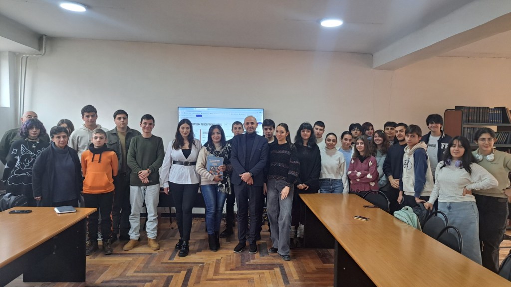Մենք կյանքի կոչեցինք ևս մի կարևոր նախաձեռնություն, այն է՝ դեկտեմբերի 6-ին Հետազոտական վարժարանի ընթերցասրահում Թրանսփարենսի Ինթերնեշնլ հակակոռուպցիոն կենտրոնի մասնագետի հետ անցկացրինք բազմաբովանդակ, հետաքրքիր հանդիպում-քննարկում։ Քննարկմանը մասնակցում էին 11-րդ դասարանի աշակերտները, հասարակագետ-դասավանդողները, այլ հետաքրքրված անձինք։ Հանդիպման համակարգողն անգլերենի դասավանդող Նունե Այդինյանն էր։