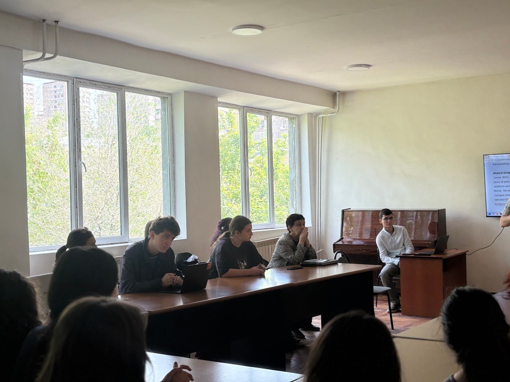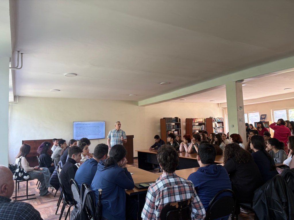 On April 28, at the initiative of English teacher Nune Aydinyan, a meeting-discussion on the topic “Armenia’s New Post-War Strategy” was organized in the reading room of the research college with Richard Giragosian, the founding director of the independent analytical Regional Studies Center (RSC) operating in Armenia. The discussion was attended by middle and high school students of various ages, social science teachers, college students, and other interested parties.