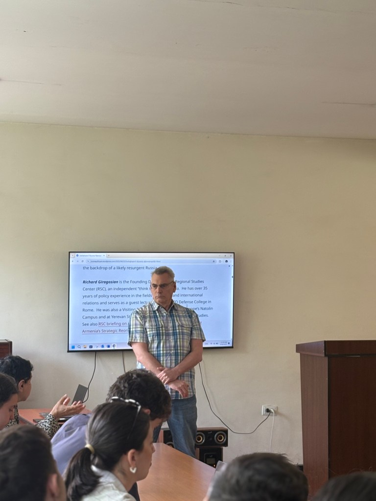 Interested students regularly asked Mr. Giragosian questions related to the recent Armenian-Azerbaijani negotiations, a possible new war, Turkey’s involvement in the processes and the conduct of peace negotiations with the latter, regional players and stakeholders, the readiness of the Armenian side to join the European Union and its realism in the current context, the situation within Armenia in both political, economic, and social aspects, changes in the world order expected in the near future, Russian-American relations, the impact of the Russian-Ukrainian war on the region, the deployment and activities of an international peacekeeping observation mission along the borders, and a number of other topics.
