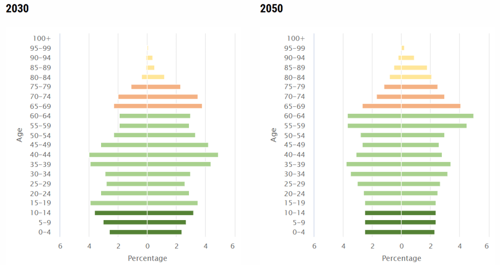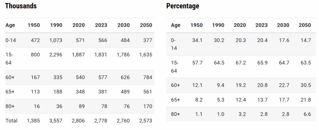 - Բնակչության ծերացում. Ծնելիության նվազման և կյանքի միջին տևողության աճի հետևանքով նկատվում է բնակչության աստիճանական ծերացում, ինչը մեծացնում է սոցիալական ապահովության համակարգի վրա բեռը։