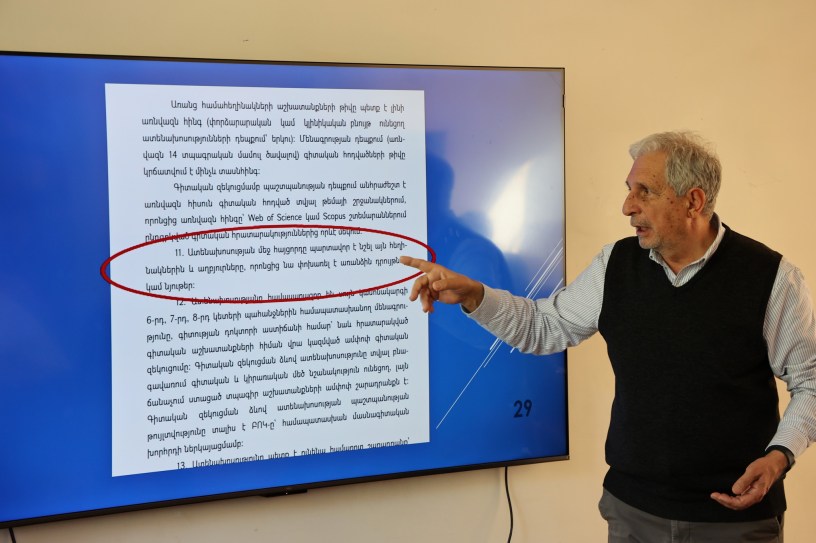 Բանախոսը մի շարք նշանակալի խորհուրդներ տվեց երիտասարդ հետազոտողներին, որոնք կնպաստեն աշխատանքի ճիշտ կառուցմանը, շարադրմանը, հրապարակմանը։